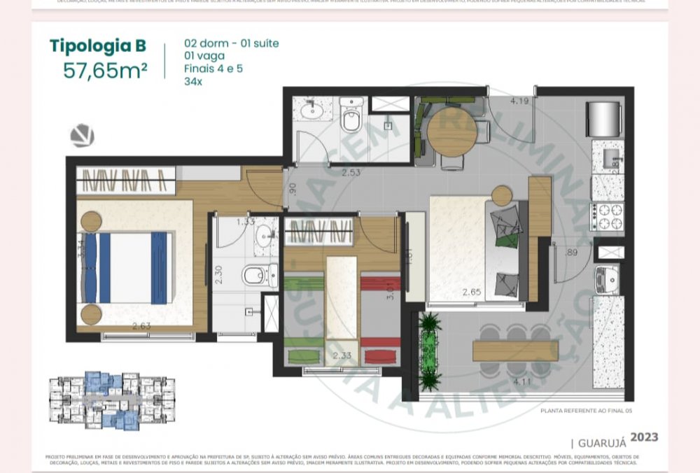Área Total: 57 m² (R$ 15.129/m²)Área Privativa: 57 m²
