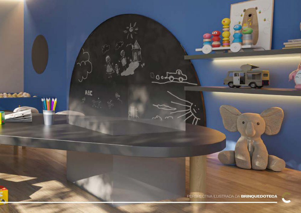 * **Lazer:** Salão de festas elegante, espaço gourmet para os amantes da culinária, salão de jogos para diversão garantida, playground e brinquedoteca para as crianças.