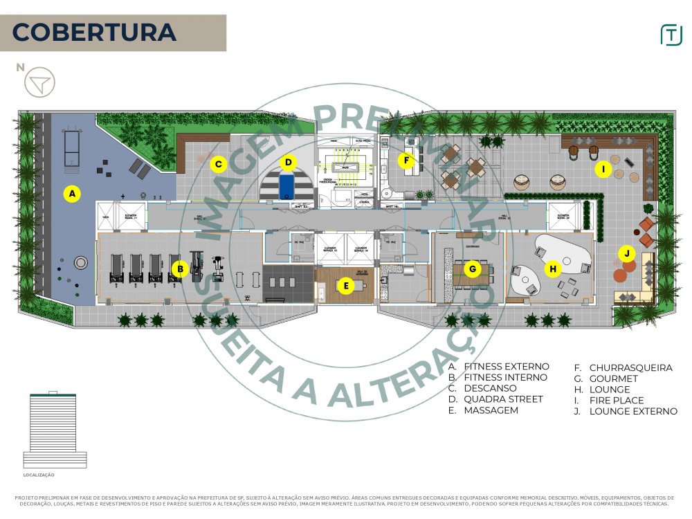 lazer no térreo e na cobertura