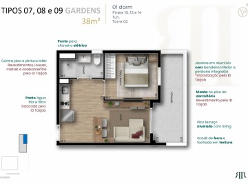 temos apartamentos de 31m e gardens de 38 À 89m com terraço