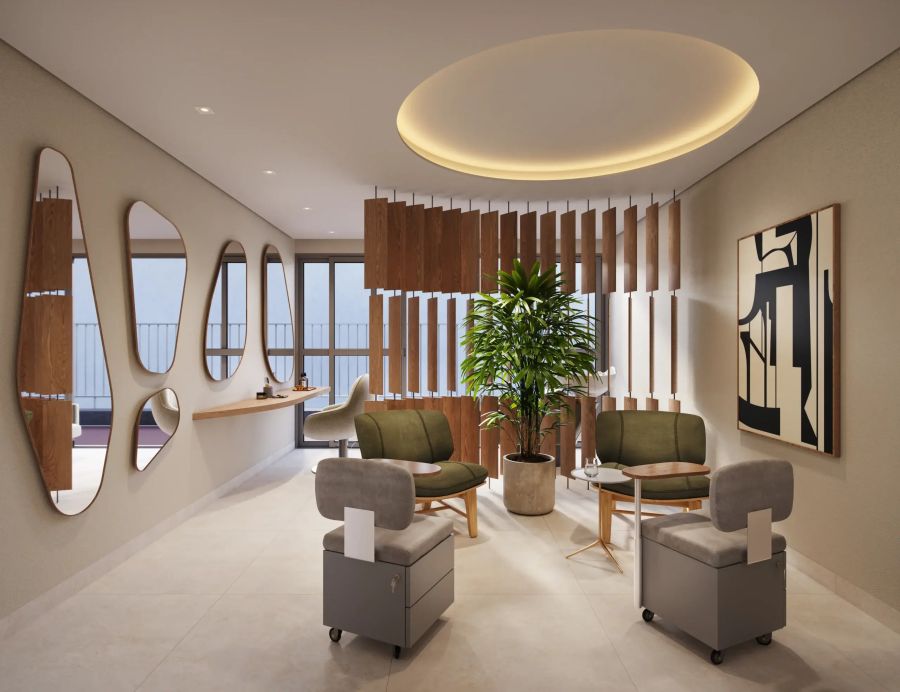 * Para os momentos de relaxamento: sauna para relaxar após um dia agitado, espaço de beleza para cuidar de você e um belíssimo jardim para apreciar a natureza.